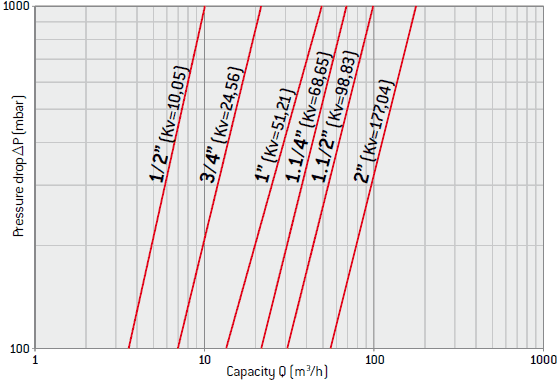 It is defined Kv the flow in m³/h of water at temperature of 15,5°C that causes a pressure drop of 1 bar: bigger is its value, less are the pressure drops.